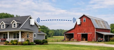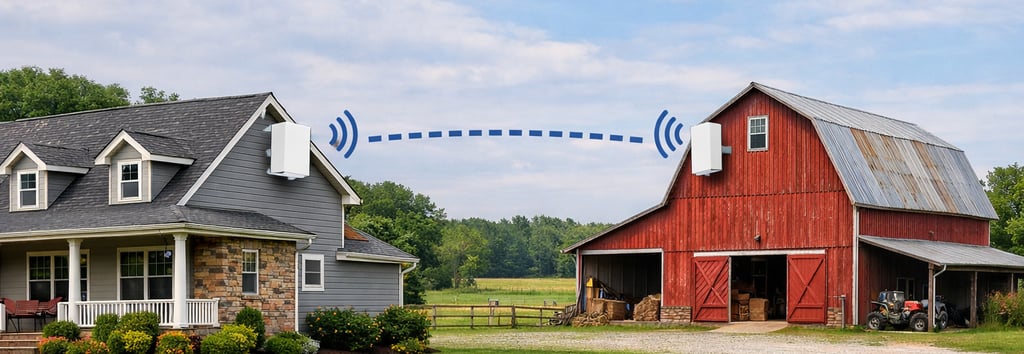 Installing a wireless bridge between your house and barn is a smart, cost-effective way to extend your network without trenching cable.